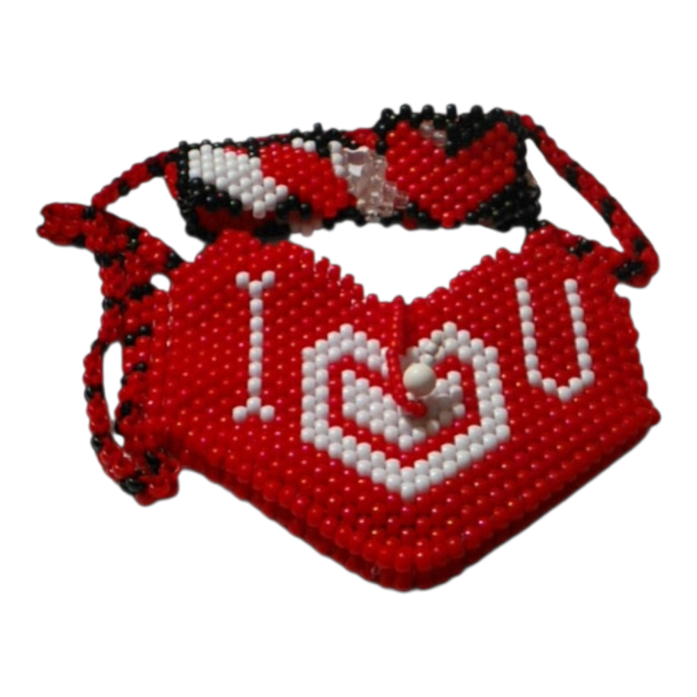 Red Heart Smily Face Pouch Pony beads Handmade-to-Order and Two Kandi Cuffs with Hearts
