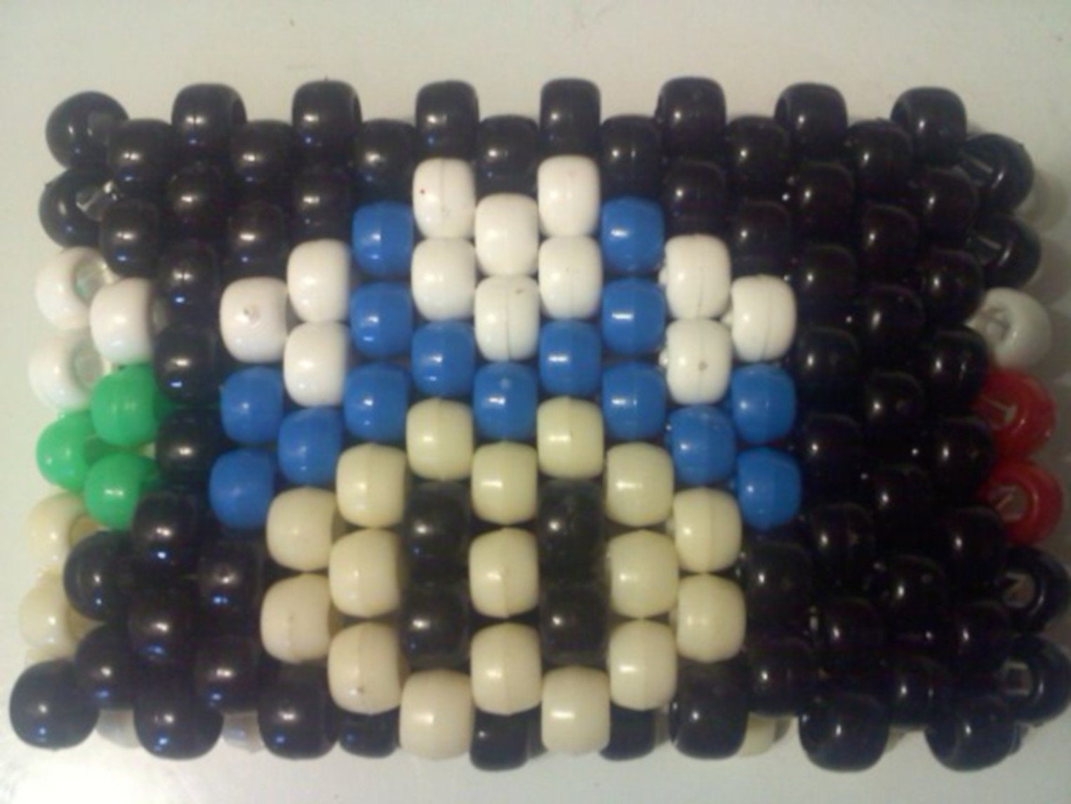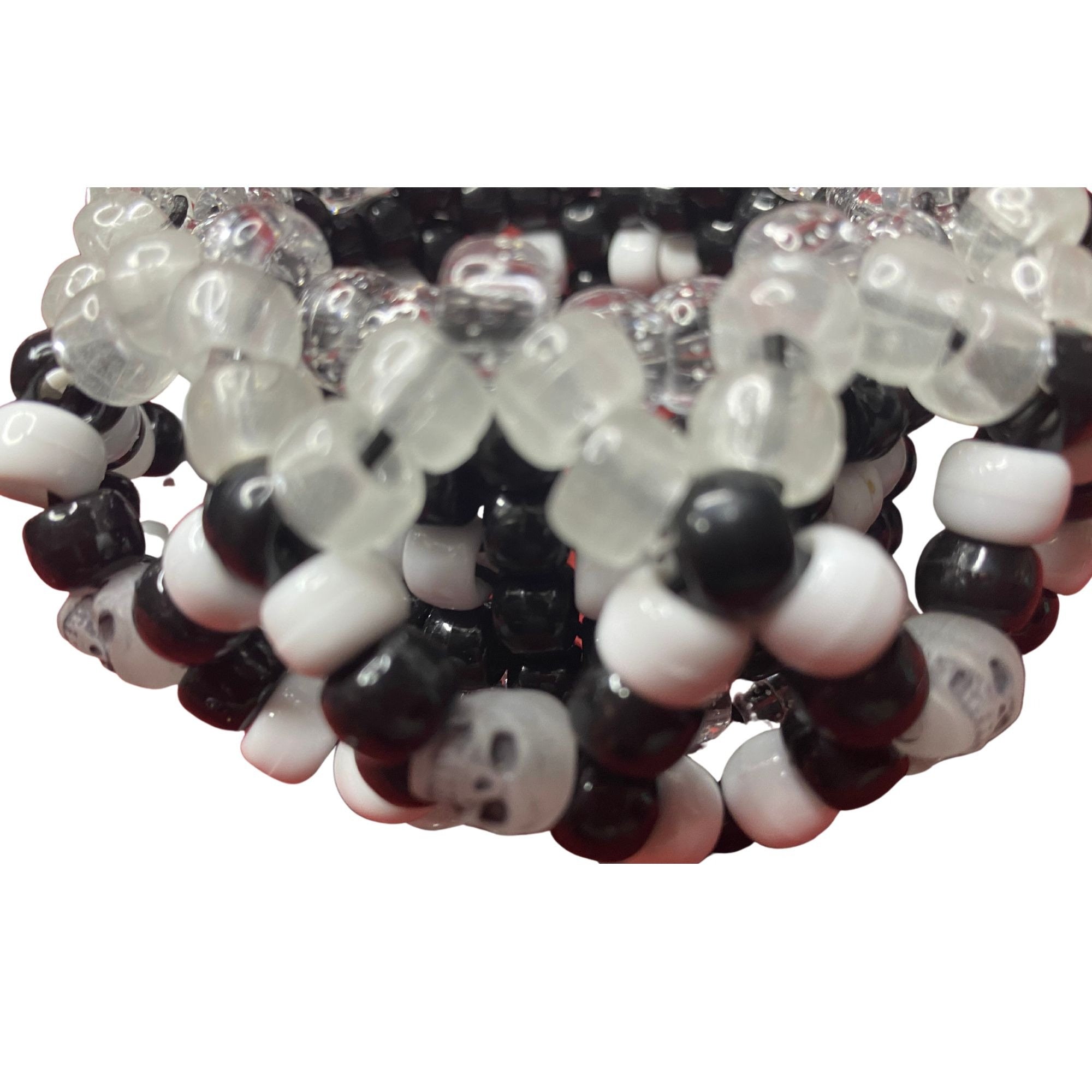 3d Kandi Gothic Cuff-Black-White Pony Beads-10 Glow-n-Dark Skulls-EDC Friendship Bracelet